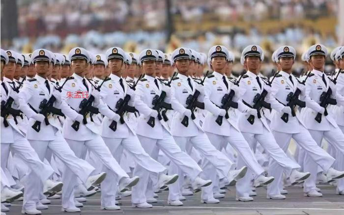 纵横万里海疆,建功远海大洋。朱孟钰(第一排左起第8位)作为海军方队成员,以挺拔的身姿和铿锵的步伐走过天安门广场,展现了交职军士生的飒爽英姿。